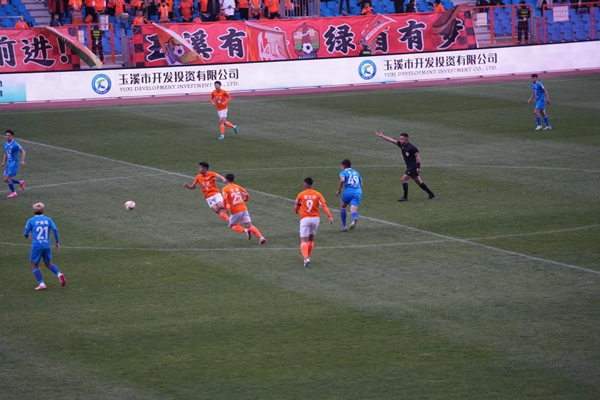 下半场开始后,双方球队在战术上均进行了调整。第55分钟,玉溪队2号球员梅继承为玉溪队再入一球,将领先优势扩大为2:0。