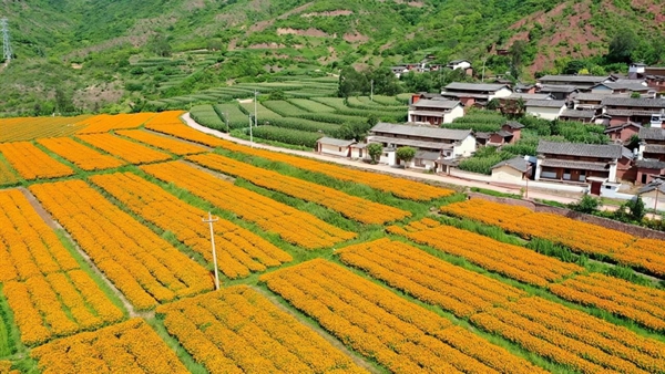 清晨,云南省楚雄州双柏县大庄镇大罗块村的民族文化广场上,各族村民伴着朝阳舒展筋骨,孩子们在健身器材旁嬉笑打闹;田间地头,万寿菊铺就金色花海,青蚕豆挂满枝头,农户们忙着采收晾晒;村道两旁绿树成荫,白墙黛瓦的民居错落有致,污水管网隐于地下,一幅“望得见山、看得见水、记得住乡愁”的和美乡村画卷在群山间铺展。“以前村里路不好走,闲下来没处去;现在道路硬化到家门口,文化广场能跳舞看戏,日子过得比蜜甜!”谈及变化,老党员杨正发感慨道。