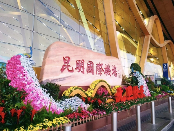 (昆明机场营造浓厚的节日氛围)