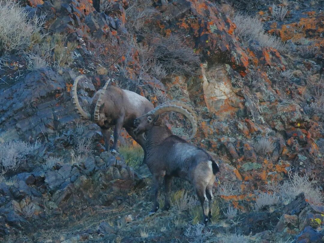 1月4日,托里县巴尔鲁克山区惊现一群山中精灵--北山羊。它们或追逐嬉戏、身姿矫健,或驻足眺望、神态悠然。在陡峭的山崖上,北山羊如履平地,休憩时又尽显安然。北山羊矫健身影与苍茫山景相映,勾勒出一幅野性与静谧交织的冬日生态画卷,尽显自然之美。(常佃学)