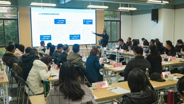 主题分享环节亮点纷呈。全国政协委员、中国人才研究会常务副会长、中国人事科学研究院原院长余兴安以《“十五五”期间人力资源服务业发展的方向与路径》为题,紧扣政策导向,从产业与就业协同、人才区域协作、服务贸易发展、数字化转型四大维度,深度解读了行业高质量发展的路径与实践方向。