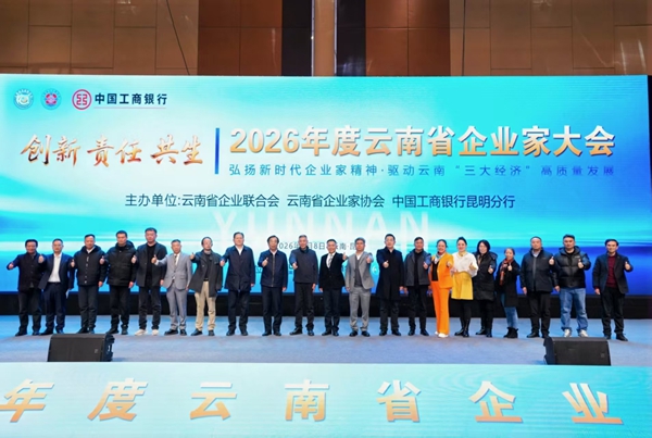 1月8日,以“创新•责任•共生——弘扬新时代企业家精神,驱动云南‘三大经济’高质量发展”为主题的2026年度云南省企业家大会在昆明举行。