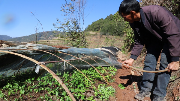 (吕付营对种苗进行日常管护)