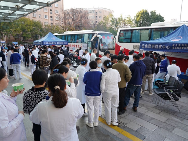 这样的故事在云南省肿瘤医院并非个例,医院多年来持续组织无偿献血活动。据云南省肿瘤医院相关负责人介绍,在肿瘤诊疗的全过程中,无论是手术切除、化疗放疗,还是应对突发的出血并发症,安全充足的血液都是守护患者生命的“生命线”。从2016年开始,该院每年都组织医务人员参加无偿献血月活动,累计已组织10批3561人次参加无偿献血,献血量达106万毫升。