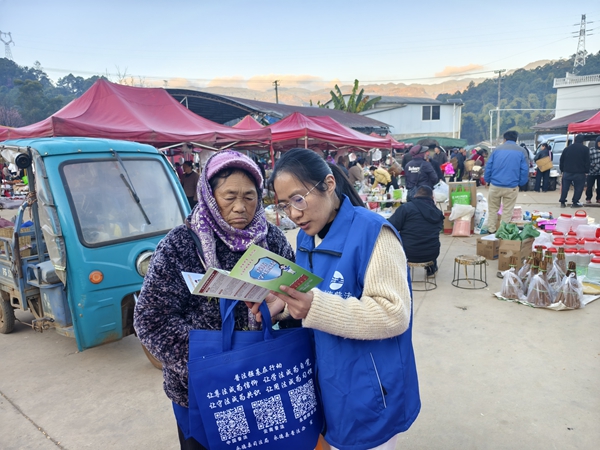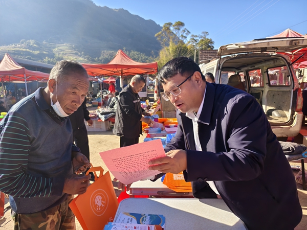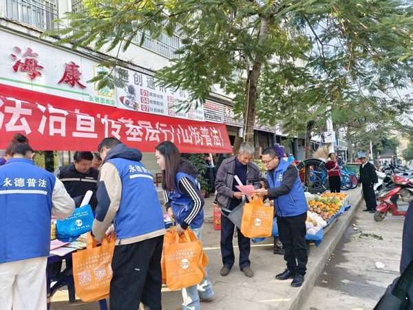 精准锚定需求,让普法更贴民心。永德县立足乡村实际,以“5+”宣传模式破解普法痛点,在30余条人流密集的山街精准布点,聚焦赶集群众、流动商贩等重点群体,通过法律咨询、资料派发、双语宣讲、现场展播与线上推送的多元组合,实现普法服务广覆盖、精准达。宣传内容紧扣群众生产生活痛点,不仅涵盖宪法、民法典等基础法律,更将反有组织犯罪、未成年人保护等热点领域纳入其中,把防命案、防交通事故、防电信诈骗、防食品安全“四防”知识,与养老保险、医保社保、征兵政策等惠民服务打包送达,让不同群体都能找到贴合自身需求的法治答案。