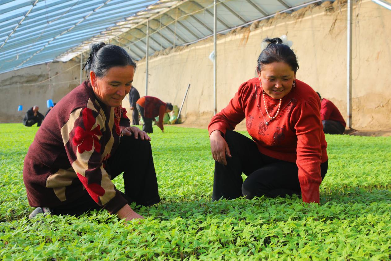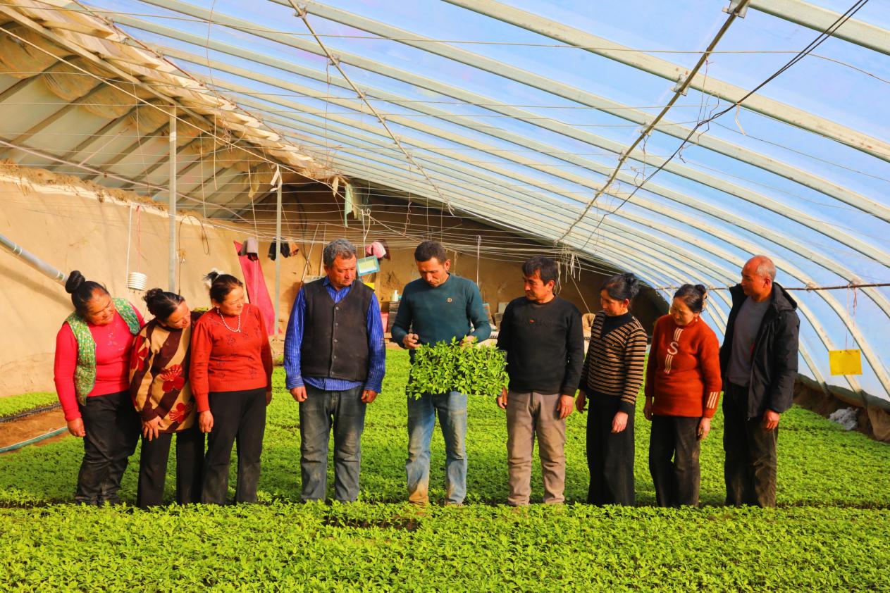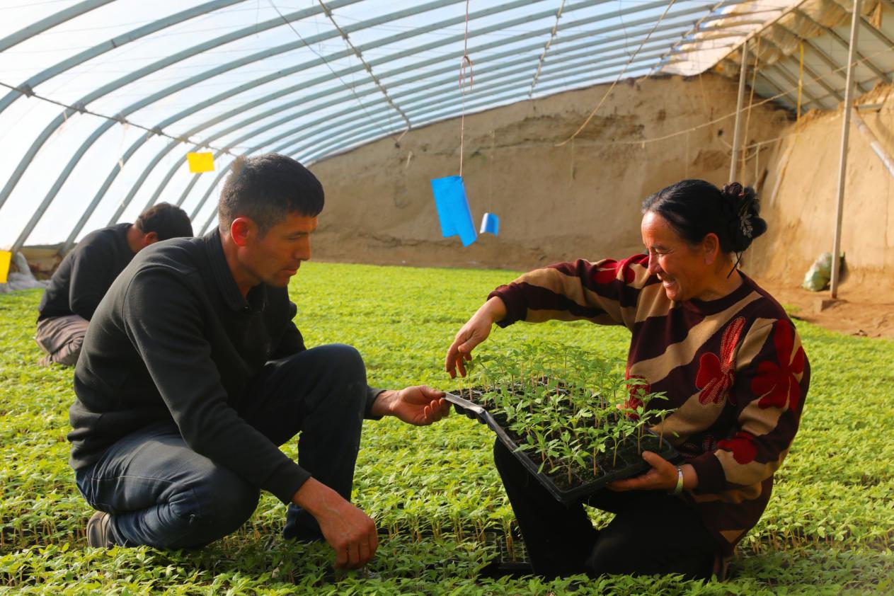 大棚内农户忙育苗,乡村振兴添活力。阿依奴尔摄