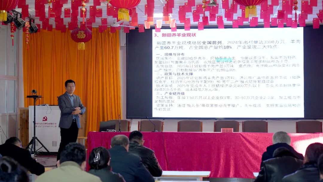此次活动紧扣柯坪县养殖户生产痛点,精准对接产业发展需求。广东海洋大学滨海农业学院二级研究员甘尚权、滨海农业学院副教授杜春梅分别聚焦“南疆高效羊饲养管理技术”“南疆草食动物(羊、骆驼)地缘饲草料资源开发与高效利用”两大核心主题开展专题讲座。专家结合柯坪当地气候条件、土壤特性、饲草料种类及养殖实际,用通俗易懂的语言详解高效饲养管理要点、饲草料资源优化配置、疫病防控基础等关键技术,现场解答养殖户在日常生产中遇到的各类难题。