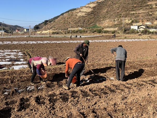 时下,云南省昆明市寻甸县凤合镇田间地头一派繁忙景象,农户们抢抓小春洋芋播种的黄金时节,翻耕整地、切薯拌种、覆膜播种,一系列农事操作有条不紊,一颗颗饱满的薯种被悉心植入沃土,孕育着新一年的丰收希望。