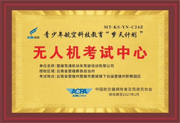 此次获批的三项资质,是AOPA对学院航空科技教育体系、教学能力与产业对接实力的权威认证。其中,梦天计划无人机考试中心:授权区域覆盖楚雄彝族自治州,考试地点落地楚雄州职教园区,为本地青少年提供“家门口”的官方无人机等级考试、操作能力合格证考核通道;梦天计划特色机构:标志着院校航空科普课程体系符合全国“梦天计划”标准,具备特色化、专业化的青少年航空科技培育能力;百万青少年无人机飞手培养计划合作机构:纳入全国性青少年无人机人才培育矩阵,同步共享前沿航空教学资源。