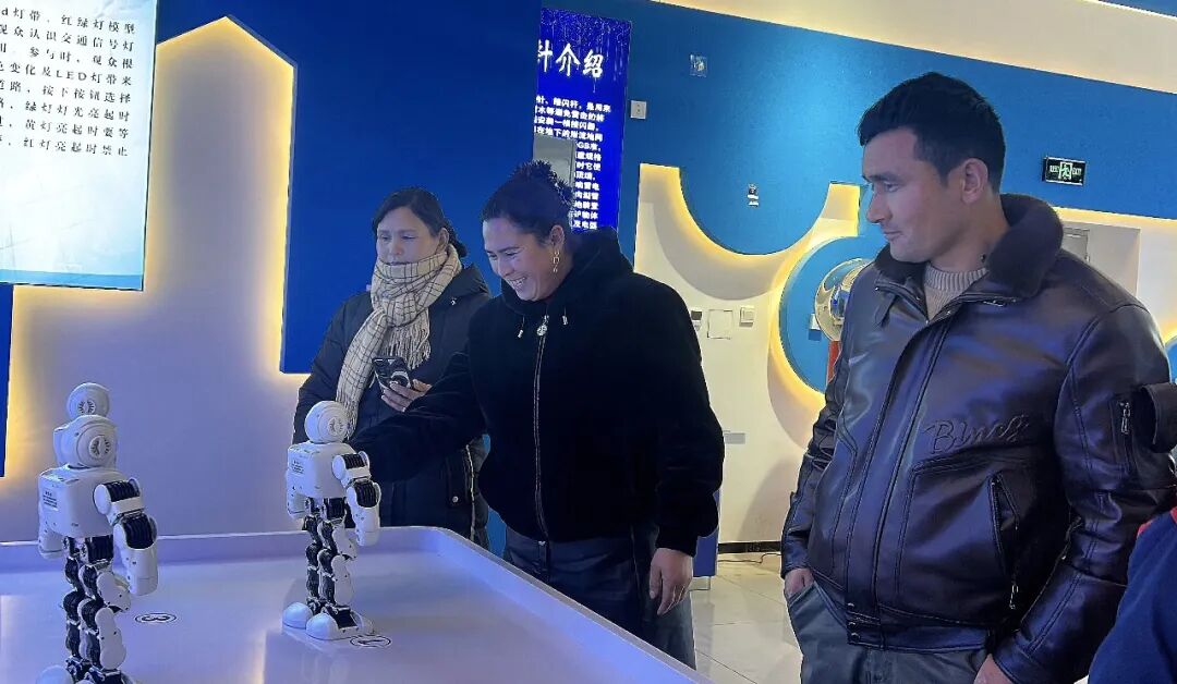 荒地镇胜利社区居民萨拉麦提•台来说:“今天来科普馆,我感到特别开心,在这里看到了好多以前从未见过的科技实验设备,机器人给我留下的印象最为深刻,我觉得特别神奇、特别兴奋,这让我深刻感受到了科技的强大力量。”