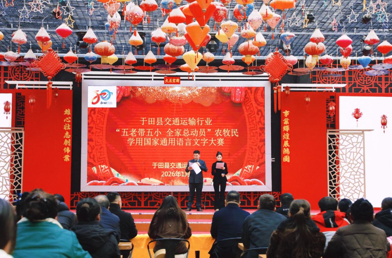 近日,于田县交通运输局精心策划并举办的“五老带五小、全家总动员”农牧(居)民学用国家通用语言文字大赛火热开启。大赛现场亮点频现,众多交通运输行业从业人员以多元形式精彩演绎,既呈现了学用国家通用语言文字的显著成效,更以语言为纽带,汇聚起民族团结的磅礴力量。