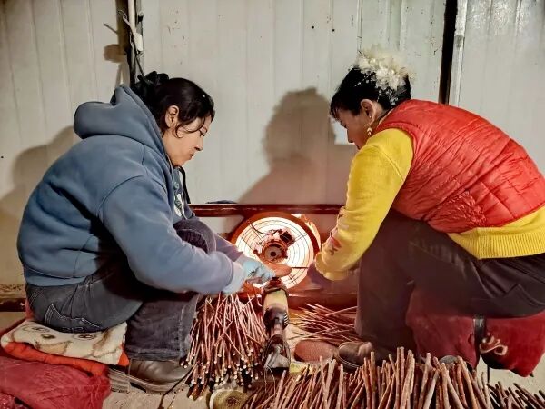 村民们在合作社加工红柳串,靠勤劳双手过上好日子。阿依奴尔摄
