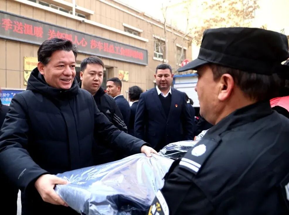 寒冬送暖,情系一线。1月27日,莎车县委副书记、县长艾山•吾买尔来到莎车县叶尔羌保安有限责任公司、莎车县方根天然气有限公司,为工作在一线的工作人员送上慰问物资,传递党和政府的关怀与温暖。