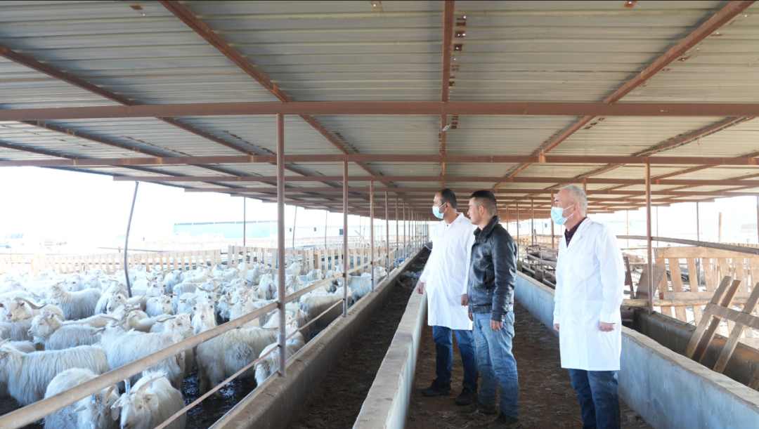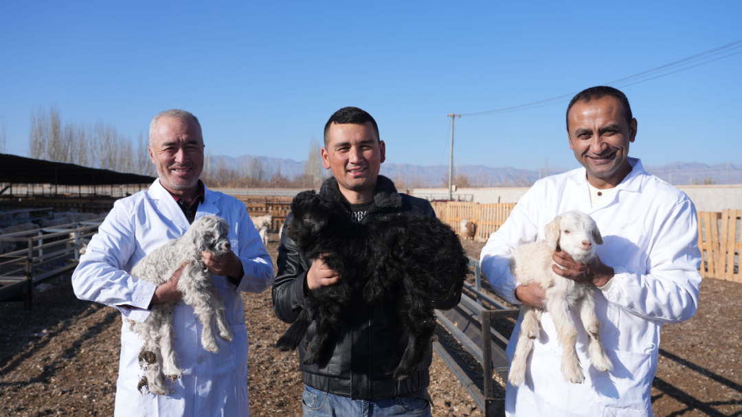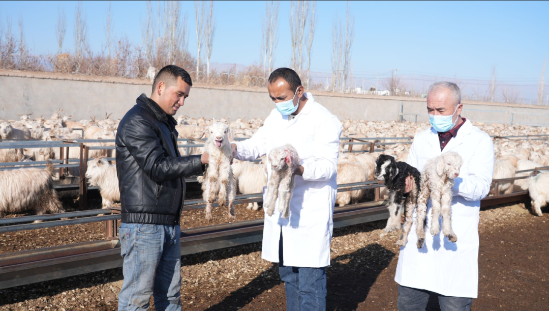 柯坪县聚宝盆牧产品农民专业合作社负责人穆斯塔帕•吐尔孙说:“我们合作社现在有1万只山羊,其中2500只已经产羔了,兽医站的工作人员经常来我们这儿进行技术指导,给我们提供了很多的帮助。”