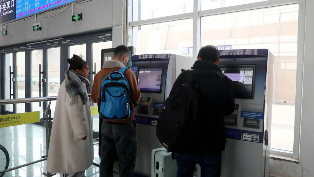 1月27日,在莎车火车站候车大厅候车区内,旅客们或紧盯屏幕等待检票,或与亲友轻声寒暄。在重庆上大学的阿依夏木•麦麦提图尔荪正在自助售票机旁查看车票信息。她分享道,此次提前购买返校车票,惊喜地发现有了直达川渝的列车,这趟车不仅节省出行时间,更免去了中途换乘的奔波,让她十分欣喜。