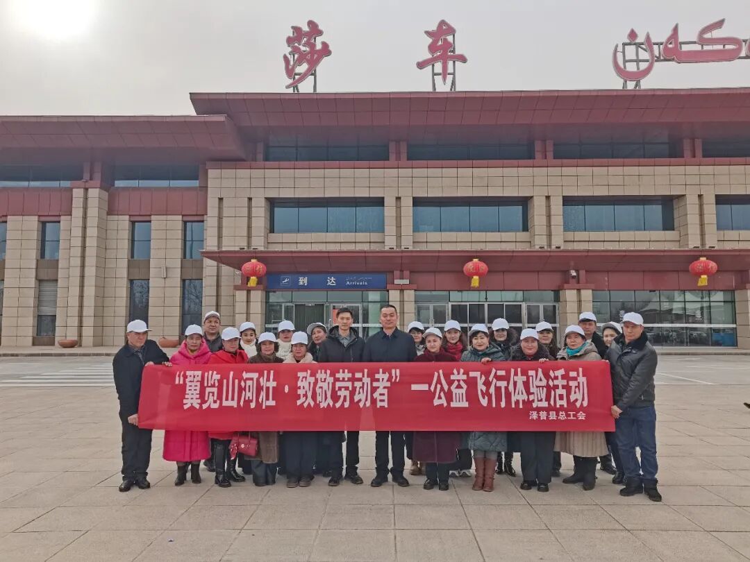 1月27日,泽普县总工会举办“翼览山河壮•致敬劳动者”公益飞行体验活动,组织20名一线环卫工人乘坐航班,从莎车叶尔羌机场飞往和田昆岗机场,实现空中出行愿望。