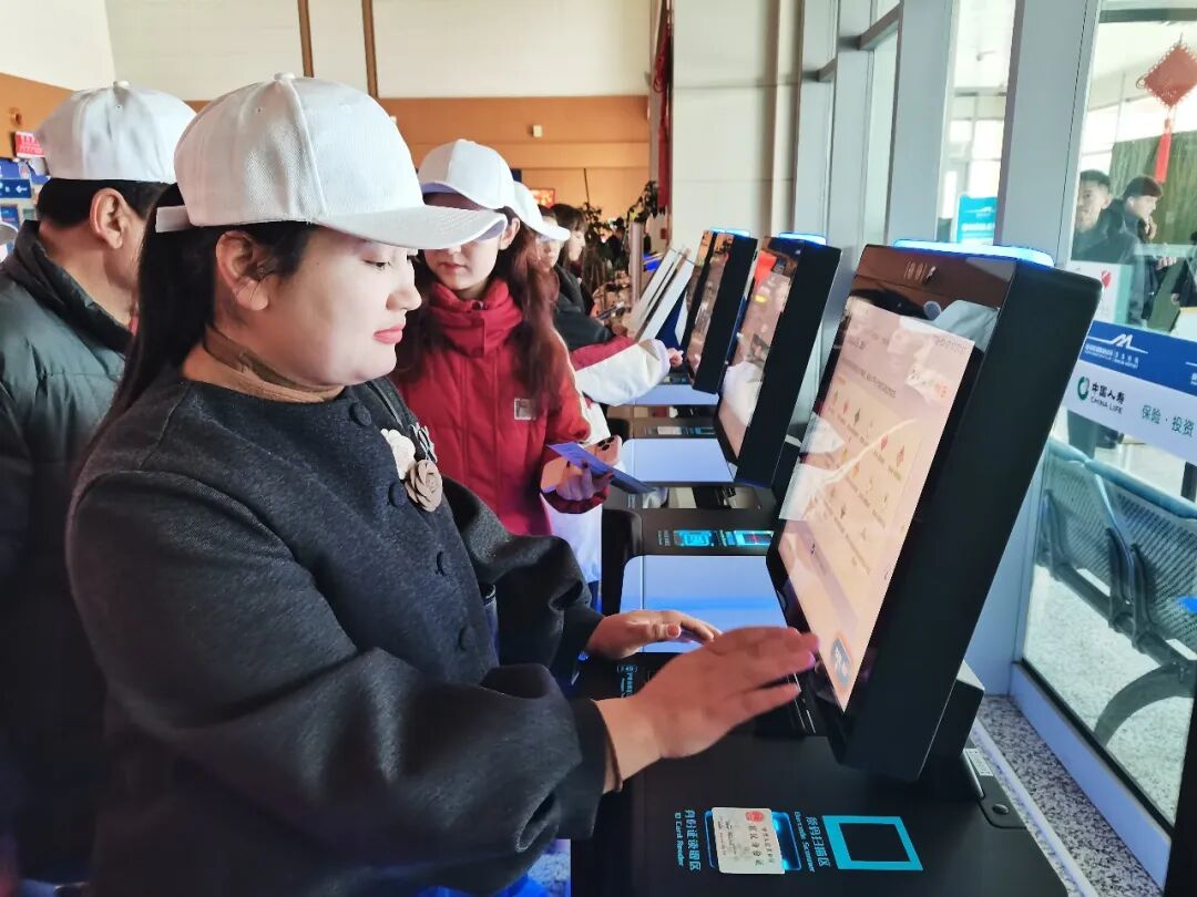 当日下午,受邀环卫工人集结后,从泽普县城出发沿G315国道行驶抵达机场。到达机场后,环卫工人进行打卡留念,通过安检后,泽普县总工会工作人员为其办理登机牌,并讲解安全乘机知识。