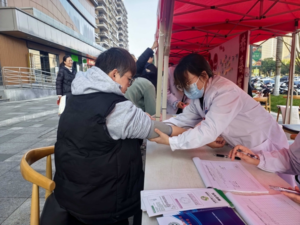 (医护人员为服务对象量血压。刘芳/摄)