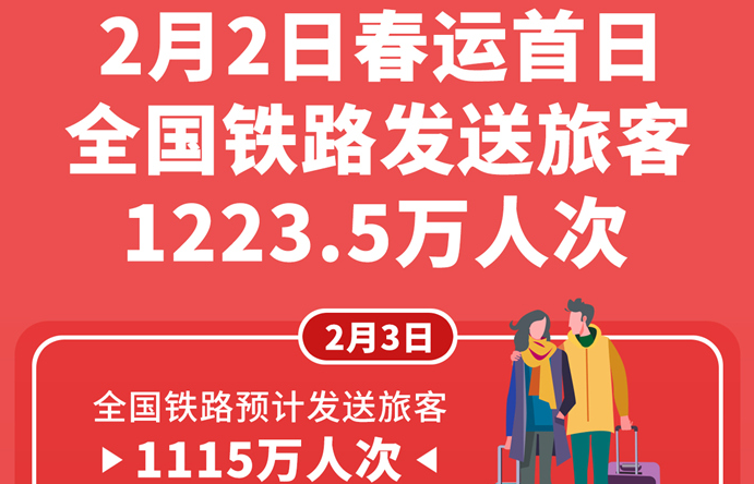 2月2日春运首日全国铁路发送旅客1223.5万人次