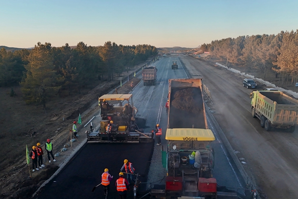承克高速Ⅰ标段完成全线首个沥青下面层试验段摊铺