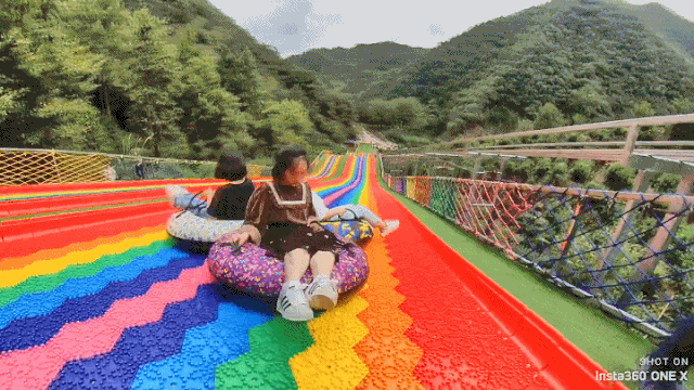 彩虹滑道:168米超长速滑,28米落差高度,让你体验飞一般的感觉,所有的烦恼抛在脑后,所有的压力尽情释放。