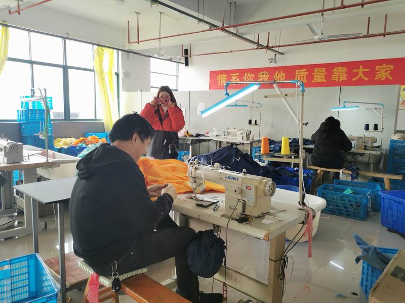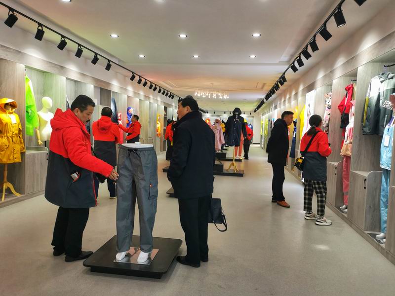 3月7日上午,六安市文化和旅游局特聘大V“六安旅游推广大使”一行,来到我市旅游产品“琴飞曼”雨衣生产基地安徽忠旭雨衣制造有限公司参观考察。在公司负责人王总带领下,旅游推广大使们兴致勃勃参观了该企业的产品展示厅,各种雨衣产品样式多样品种齐全。王总详细介绍了公司发展历程,及各款出口产品、定制产品及一线电商销售产品特点及销售情况。随后推旅游广大使们又走进生产车间,实地参观了雨衣生产的各道工序。