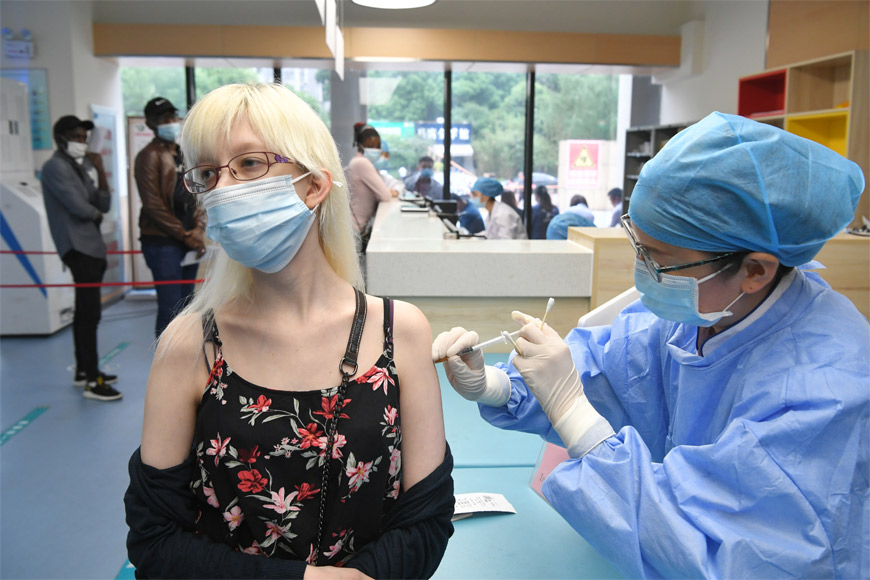 据悉,此次接种新冠疫苗的在皖外籍人士共有5名,分别来自牙买加、比利时、刚果布、贝宁,年龄最大的30岁,最小的21岁。他们在安徽大学、安徽医科大学、安徽农业大学就读。