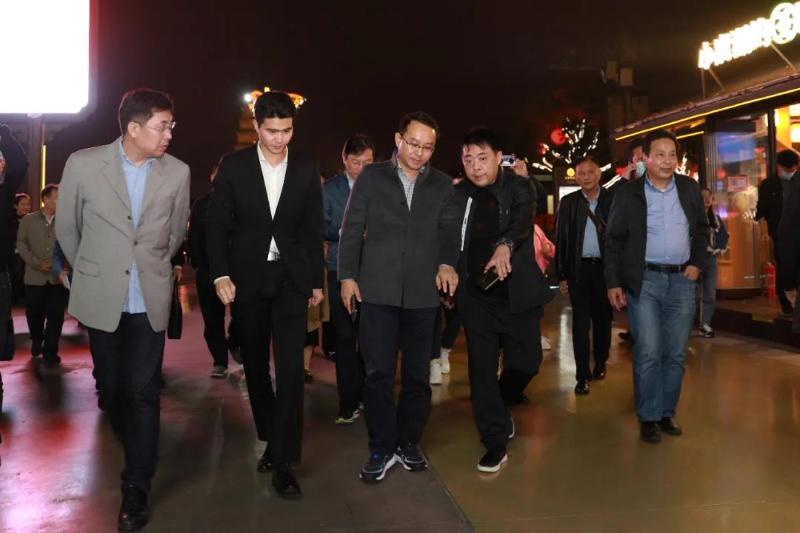 当晚,考察团实地参观了首批全国示范步行街——西安大唐不夜城步行街,考察国家级步行街创建及街区运营管理情况,就街区景观节点、中心景观带打造,文化演出组织,道路铺装等与曲江文化产业集团相关负责人进行交流。