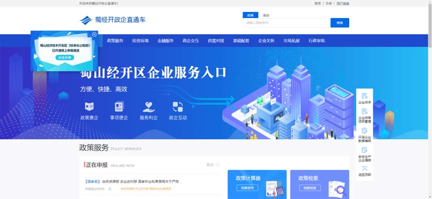 蜀山区“智慧园区”上线了全省首家“投资项目全流程数据归集”场景应用、“项目全周期服务”场景应用,围绕政府、企业在生产工作中存在的困难,通过“政企直通车”“产业云监测平台”,一方面解决政府向企业精准推送政策、消息通知等缺少渠道的问题,另一方面解决企业向政府反馈诉求缺少渠道、多口径重复填报数据的问题,最终实现服务成本的降低和服务效能的提高。自平台上线以来,围绕企业重点关注的“公租房申请”等事项提供一站式解决方案,不仅实现全程线上审批,还将办理时间平均缩短至1.39天,获得辖区企业的一致好评。