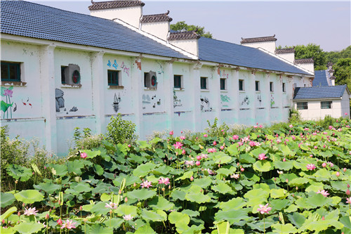 盛夏时节,走进但家庙镇观音岩村,满池的荷花随风摇曳,浅粉色的荷花与浅绿色的文化墙交织在一起,勾勒出盛夏最美的风景。