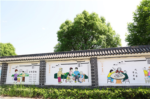 “每次接送小孩路过这里,心情都会很好,我也会跟小孩说一说这墙上的故事,边看也能边教育。”住在观音岩村的村民倪克秀高兴地说,“以前没有画的时候,到处都是乱七八糟的广告,小孩子看到也不好,现在都是这些画了,很有意义,环境也整洁了。