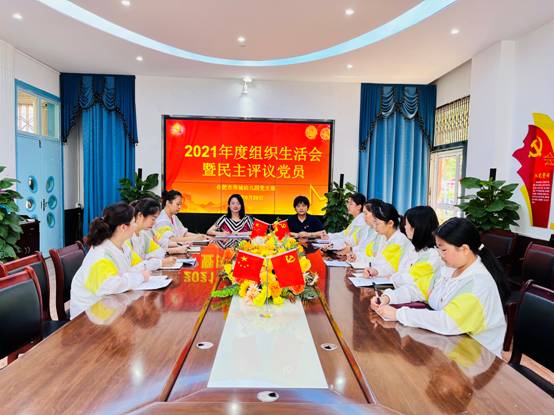 为严格执行党的组织生活制度,深入学习贯彻习近平新时代中国特色社会主义思想和党的十九届六中全会精神,2022年6月29日合肥市荣城幼儿园教育集团党支部召开了2021年度组织生活会暨民主评议党员大会。会议由荣幼党支部书记丁婕主持,庐阳区教体局人事科胡亚琴莅临指导,荣幼党支部全体党员参加会议。