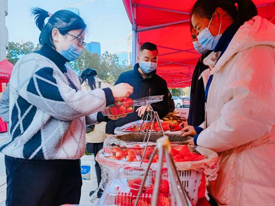 年货节现场,草莓、红菜苔、土鸡蛋、花卉、瓜子等肥东本土年货商品琳琅满目,吸引市民边逛、边吃、边选购,应接不暇。