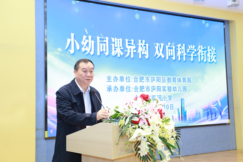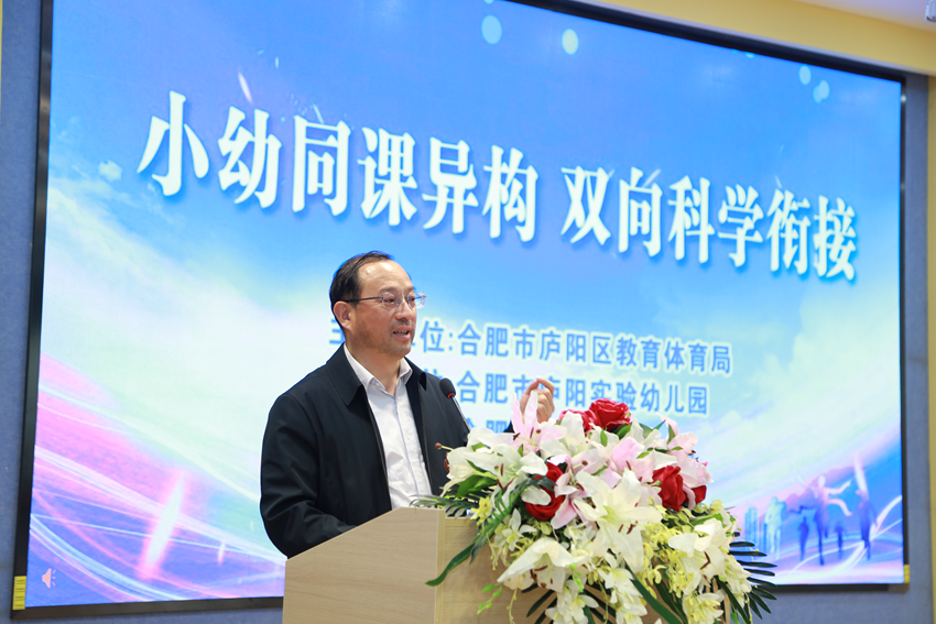 5月10日上午,庐阳区“小幼同课异构双向科学衔接”活动在合肥市庐阳实验幼儿园举办。活动由合肥市庐阳区教育体育局主办,合肥市庐阳实验幼儿园教育集团协办。合肥市教育局学前办主任杨兴东,庐阳区教体局党委委员、副局长周宗华,庐阳区教体局党委委员朱晓艳,庐阳区教体局学社办主任吴启恩,庐阳区小学语文教研员杨立新,庐阳区幼教教研员方明惠,合肥市庐阳实验幼儿园教育集团园长王晓文,来自庐阳区各幼儿园及小学的园长们参加此次活动。