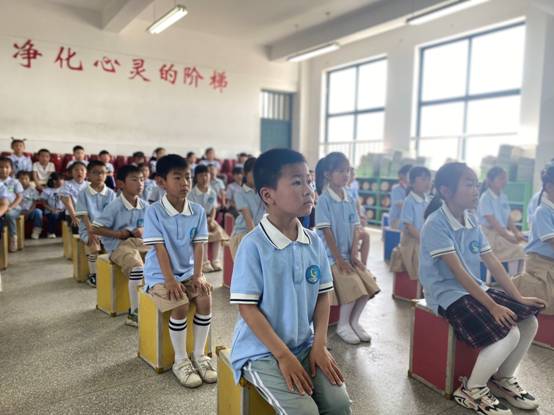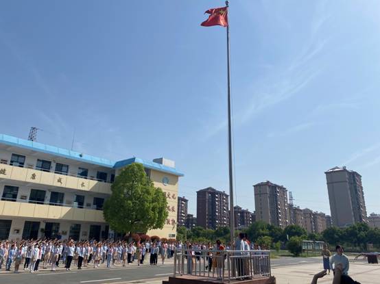 当看到庄严的五星红旗冉冉升起时,孩子们变得异常肃静、倾情投入,不由自主地跟着哥哥、姐姐一起“同唱一首歌,同升一面旗”,孩子们被这庄严、壮观的氛围渲染了,也纷纷地行注目礼。