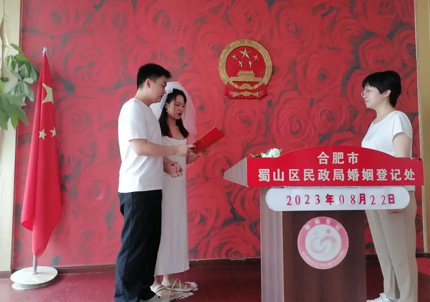 近日,从蜀山区民政局获悉,2023年全年婚姻登记大数据出炉。2023年,蜀山区共办理结婚登记7587对,较上年增长15.8%,创四年来历史新高。
