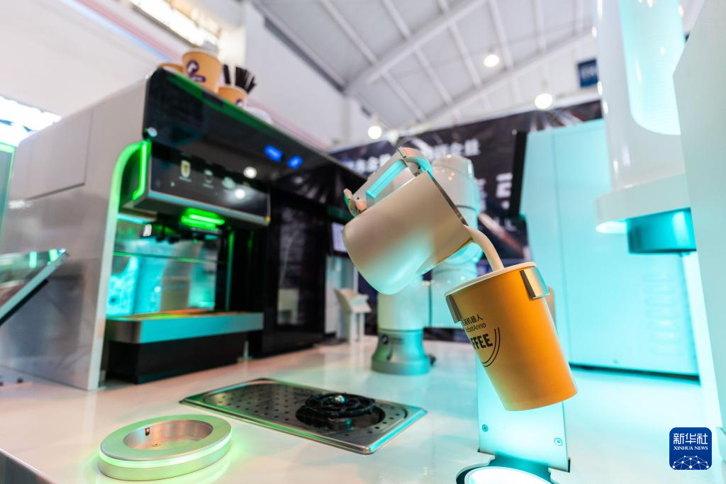 6月22日,拉花咖啡机器人在第9届南博会上制作咖啡。
