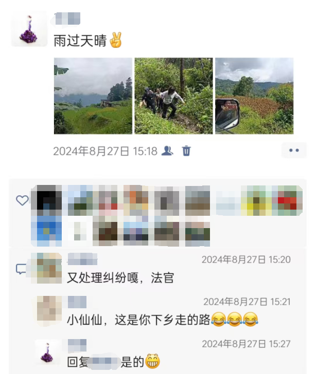 “事情处理完回去的时候,我才感觉到脚下的路原来这么难走……”来时心压大石块,不觉脚下行路难,吴仙笑着回忆道,那天纠纷调解结束时,也刚好雨过天晴。法官的情绪也随之再次灿烂。