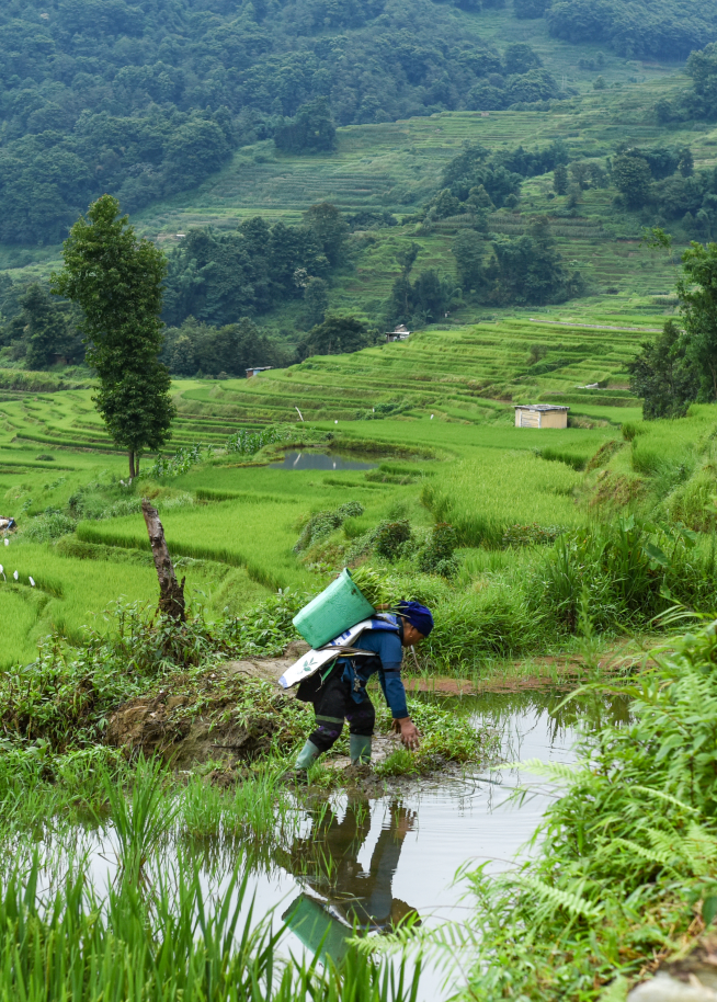 李文才,元阳县新街镇土锅寨村沟长,60岁,一人负责的水沟有三公里多。“清早5点多起,每天巡视沟渠状况,一走就是7、8公里。”像他这样的沟长,仅在土锅寨全村就有11名。