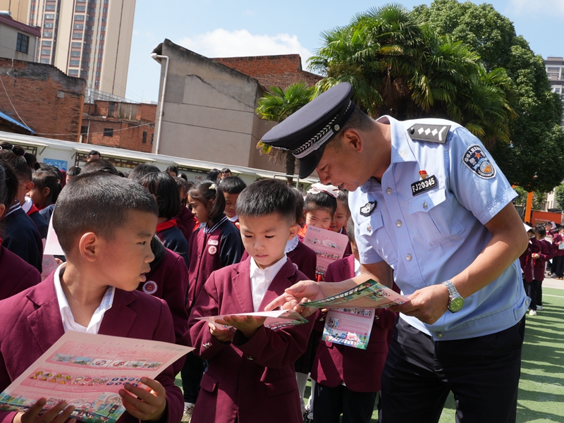 讲好“开学第一课”。新学期伊始,反诈先“开课”。开学第一天,民警辅警到辖区中小学、幼儿园送上反诈“大礼包”,提醒学生们警惕游戏、刷单类等骗局,筑牢反诈安全防线。