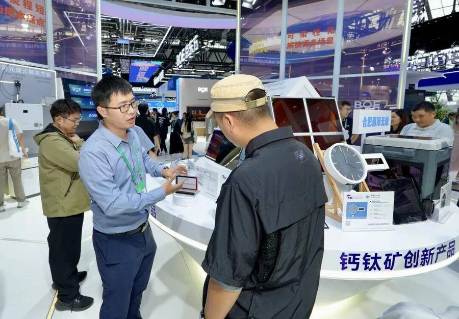 大会现场,合肥照阳光能科技有限公司展出的钙钛矿太阳能电池组件,传递出新能源技术的创新活力。依托高校团队十余年技术积累,公司先后开发出安徽省首个900 cm²大面积钙钛矿电池组件,建设成安徽省首个MW级刚性/柔性兼容的钙钛矿太阳能电池组件中试产线,实现钙钛矿太阳能电池效率超过26.5%,微型模组效率超过22%……引领新一代光伏技术的发展潮流。