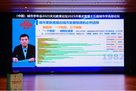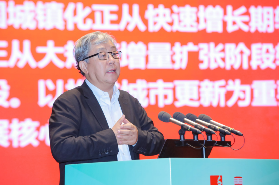 全国工程勘察设计大师、中国城市规划设计研究院院长王凯作题为《新时代城市更新的理论方法》的主题演讲。他提出城镇化进入中低速阶段,城市更新成为结构优化与高品质发展关键路径,需精准评估空间价值、推进精细设计和可持续运营,推动政府、市场与社会共同参与。
