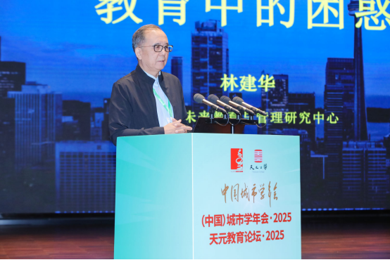 北京大学原校长、北京大学未来教育管理研究中心主任林建华作题为《教育中的困惑》的主题演讲。他指出教育具私人与公共双重属性,应立足“学以成人”,打破学科与校园边界,融入社会,注重思维培养而非知识灌输,以应对AI时代的挑战。