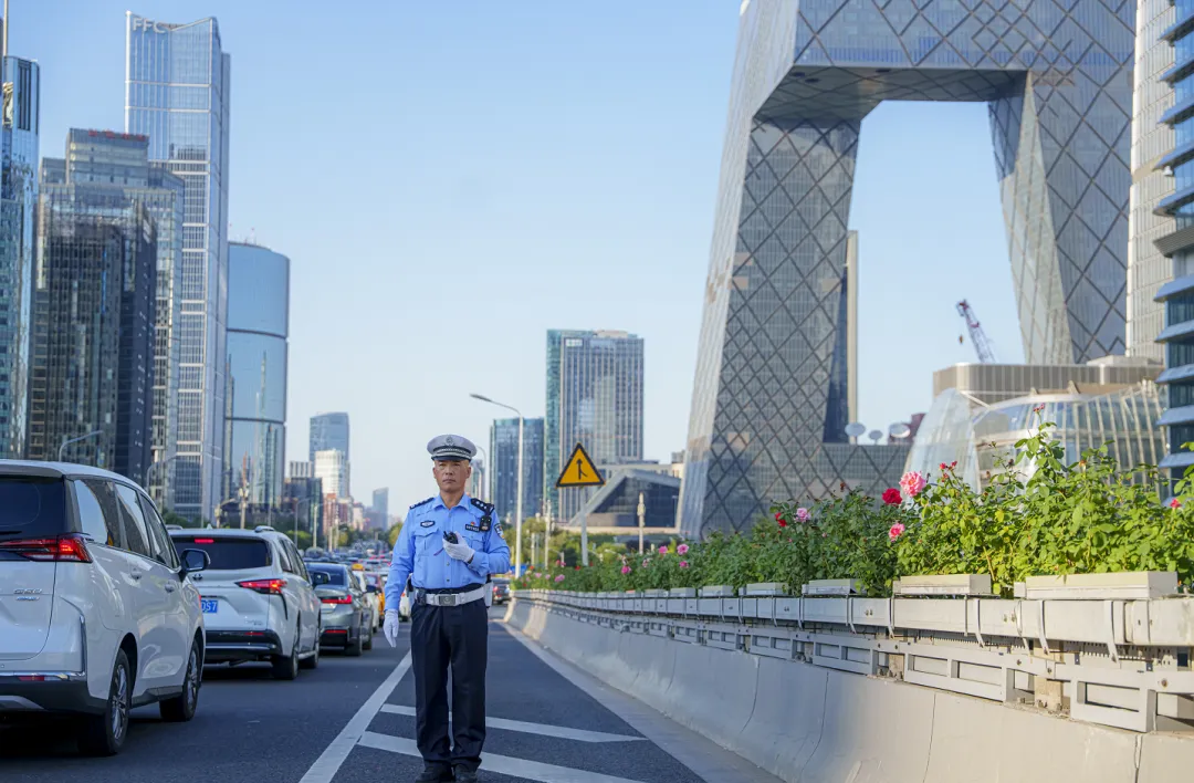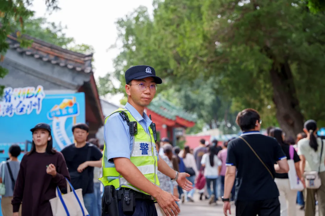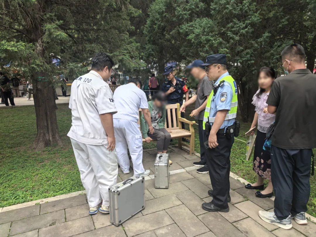 东城分局安外大街派出所民警王冰帮助突发高血压患者联系医护人员。