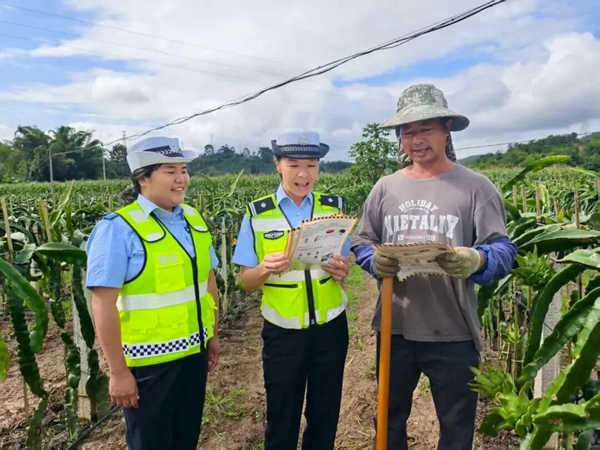 “老乡,农用车可不能载人,秋收忙更要把安全放在前头!”眼下正是普洱各地秋收的关键时节,田间地头一派繁忙景象,也是农村交通事故易发多发期。为守住农忙时节的交通安全,普洱市公安局思茅分局交通管理大队组建“流动宣传小分队”,把“交通安全课堂”直接搬到了稻田里、果园旁,成了农忙季的一道特殊风“警”线。