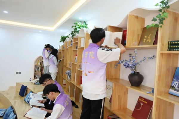 “法治乡愁书屋”秉持“法治为本、乡愁为魂、书屋为体、服务为民”四大核心理念,面向全体公众提供多元化的文化服务。书屋共分法治文化传播区、法官专业素养提升区和乡愁记忆区三大功能板块。法治文化传播区是书屋的“法治窗口”,集中展示法律书籍、普法宣传手册、法治漫画绘本、数字书籍及特色文创产品,并积极向公众推广“法信”App,让专业法律资源触手可及;法官专业素养提升区则聚焦司法队伍建设,不仅满足本院工作人员的学习需求,更为全国各地法院同仁提供交流学习机会,搭建起司法专业人才成长与交流的优质平台;乡愁记忆区生动展示本地乡土文化、历史记忆与风土人情,唤醒公众的情感共鸣与文化认同,让法治建设扎根于深厚的乡土文化土壤。