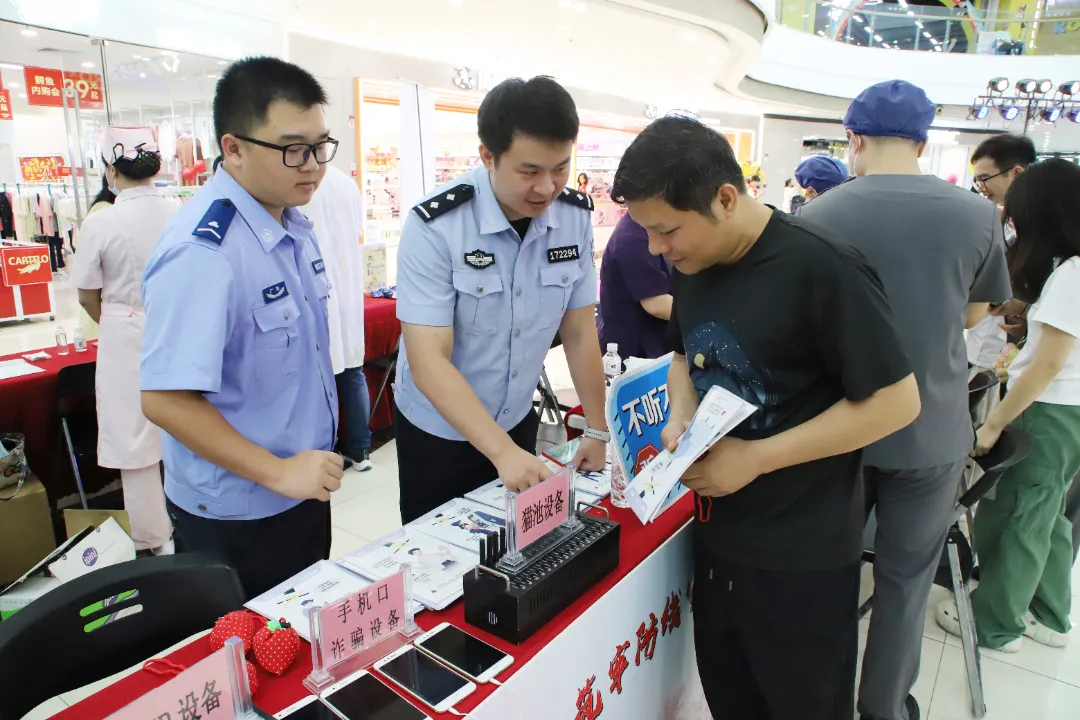 在反诈宣传区,民警一边向群众发放反诈知识宣传单,一边用通俗易懂的语言详细介绍当前电信网络诈骗的最新手段和突出特点。他们通过讲述发生在周边的真实案例,生动还原诈骗分子的种种套路,让群众直观感受诈骗的危害性。同时,民警们还手把手分享了许多实用的防诈骗技巧,切实帮助群众提升反诈意识和识骗防骗能力。