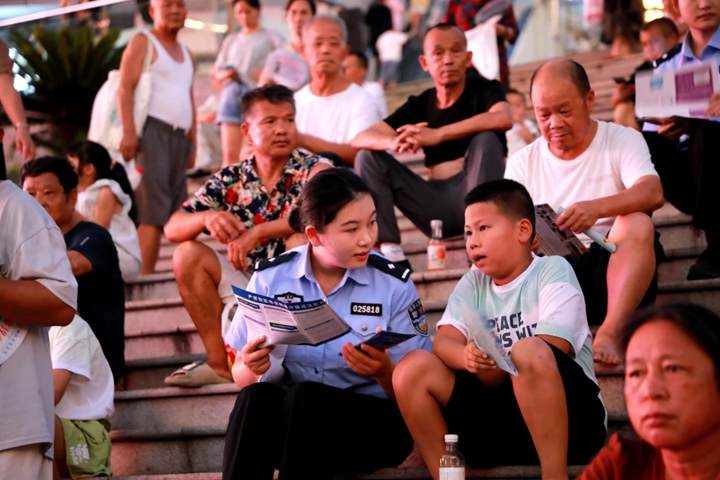 电影开场前,反诈、消防、反邪防邪的普法短片循环播放,画面里的案例不是生硬的说教,而是街坊能听懂的“家常话”;“法律风险大转盘”前,孩子们踮脚抢答“防溺水要注意什么”,答对时接过的小礼品里,藏着《中华人民共和国民法典》的生活解读;“法智大闯关”桌旁,老人们凑在一起研究“陌生链接能不能点”,工作人员递上的宣传册,把“刷单返利是骗局”的提醒印得明明白白。没有单向灌输的枯燥,只有寓教于乐的互动,正如参与市民所说:“在休闲中就把法律知识记牢了,在玩闹中就把自我保护能力提升了。”当文化IP与普法相遇,法律便从“纸上条文”走进了“茶余饭后”。