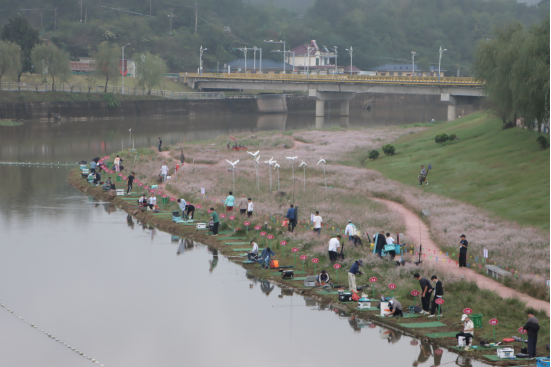 龙头景区主题游览亮点纷呈,乡村旅游也同步出彩,以农事体验、民俗活动、体育赛事、田园风光等勾勒出别样的假日图景。下符桥镇“渔羽同乐”全民健身趣味比赛在符桥景区热力开赛,为假日注入别样活力。钓鱼大赛率先开赛,选手们凝神静气抛竿收线,在水波轻漾中享受垂钓的专注与从容;不远处的羽毛球赛场则硝烟正浓,跃起扣杀、网前轻吊等精彩瞬间接连上演,引得围观游客喝彩不断。“谁说度假非得出远门?我这在家门口钓钓鱼,明天再带着孩子爬屋脊山,看日出赏云海,这假期日子惬意得很!”来自县城的张先生是个资深钓鱼爱好者,手握钓竿望着水面,语气里满是满足。