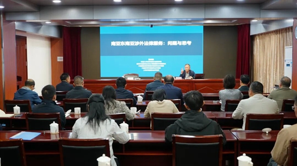 10月11日,云南省法学会第四次“法学书香”活动在昆明举办,云南大学法学院院长、二级教授、博士生导师陈云东应邀作题为《南亚东南亚涉外法律服务:问题与思考》的专题讲座,云南省委政法委副书记董大伦参加。活动由省法学会常务副会长董国权主持,省法学会秘书长胡小成、省委政法委相关处室和省法学会全体干部职工30余人参加。